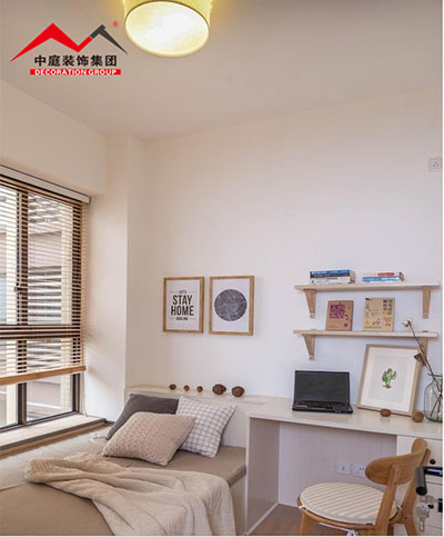 原木質(zhì)感搭配時尚白色的墻,在飄窗的襯托下顯得很有情調(diào);