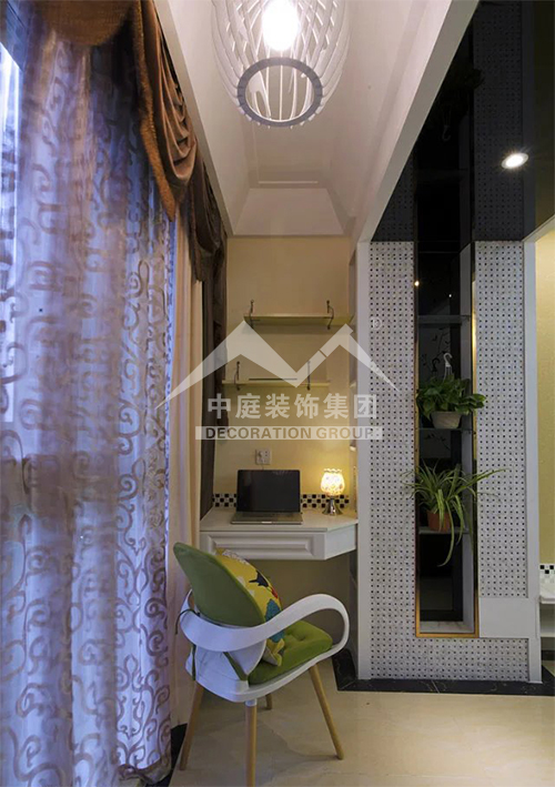將陽臺用玻璃和木材封閉成居家小書房,窗外的綠葉仿佛伸手可及,好像馬上就會進(jìn)入居室,自然與居室就這樣在陽臺這個(gè)小小空間相交融。為了節(jié)約空間,可將書桌、書架和文件柜都設(shè)計(jì)得很小巧別致,既提供了完善的實(shí)用功能,又不多占空間。