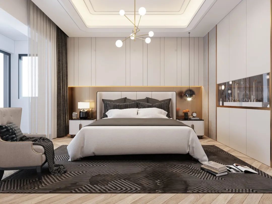 主臥一直是人們所花費(fèi)時(shí)間最多的空間,是提供人們休息、睡眠的區(qū)域。因此在設(shè)計(jì)上與其它居室有所不同,有不同點(diǎn)就會(huì)有它的特點(diǎn),我們可以依據(jù)這些特點(diǎn)打造出最終理想的睡眠空間。