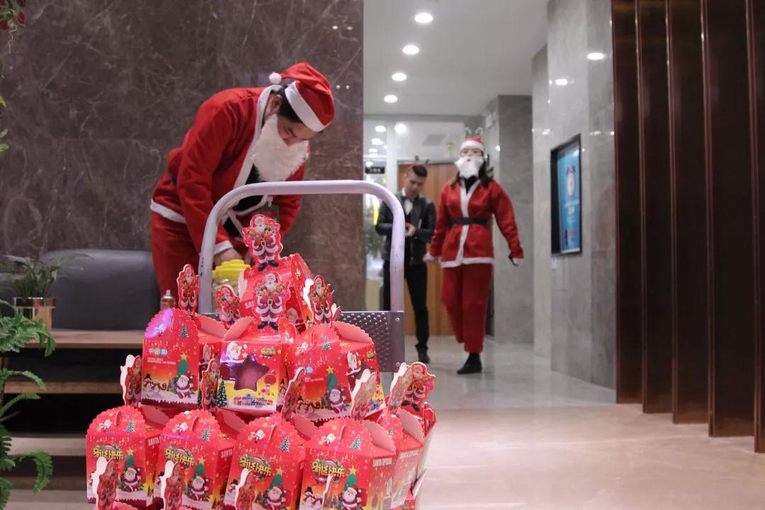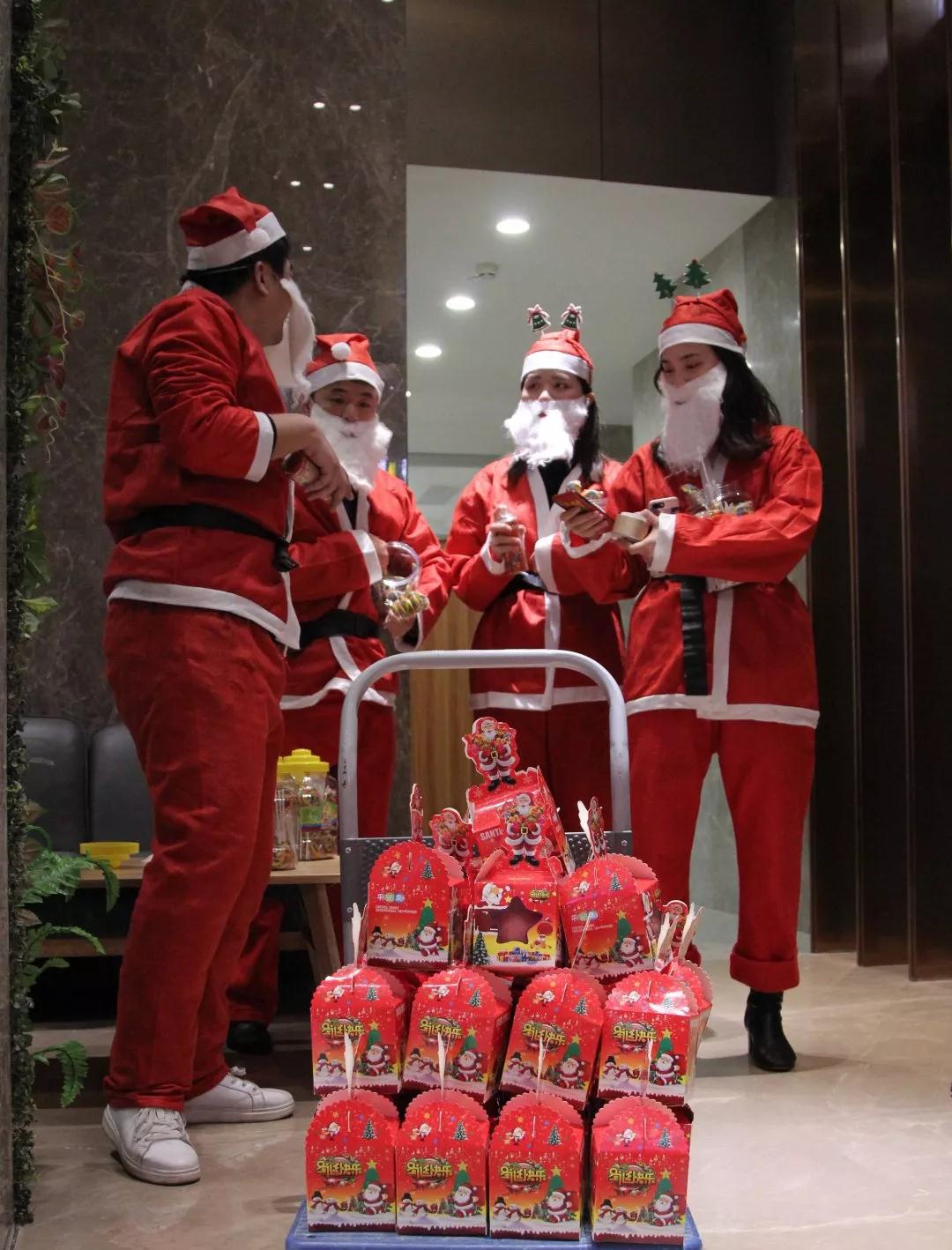 圣誕老人們齊聚在中庭裝飾集團(tuán)