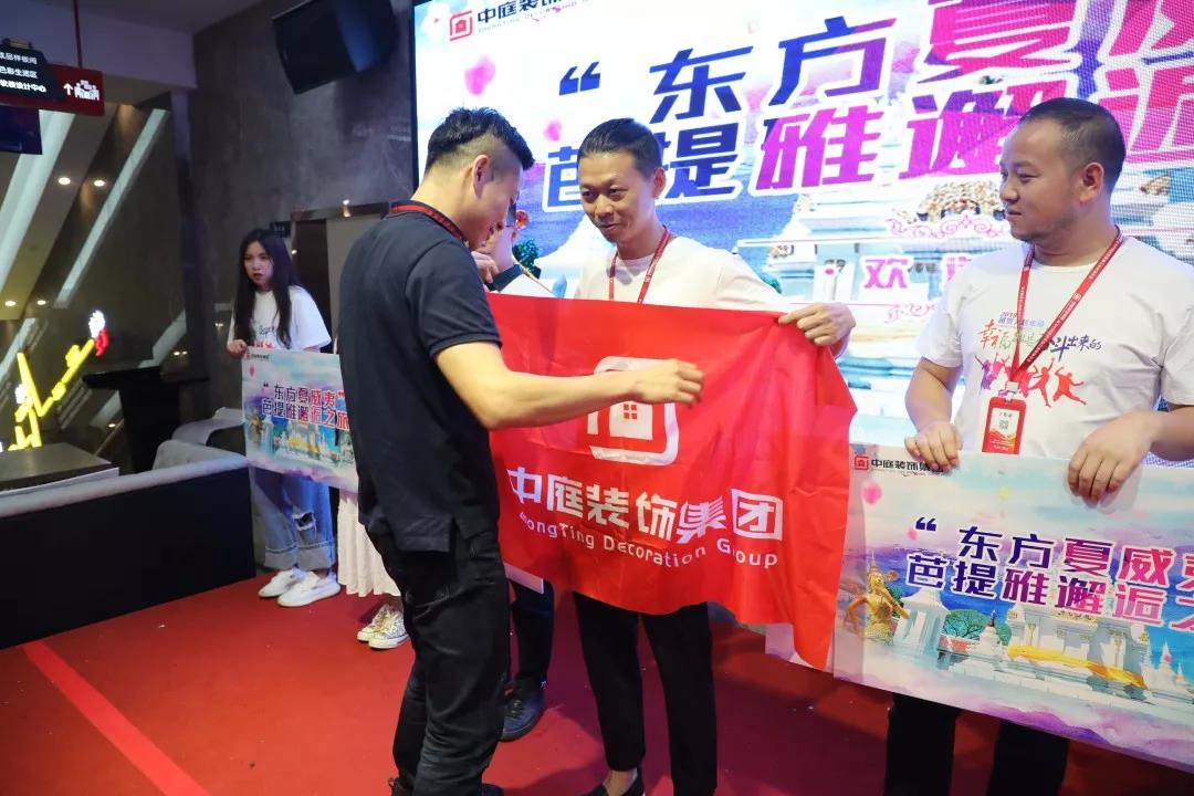 丁總為泰國國際游領(lǐng)隊頒發(fā)公司旗幟