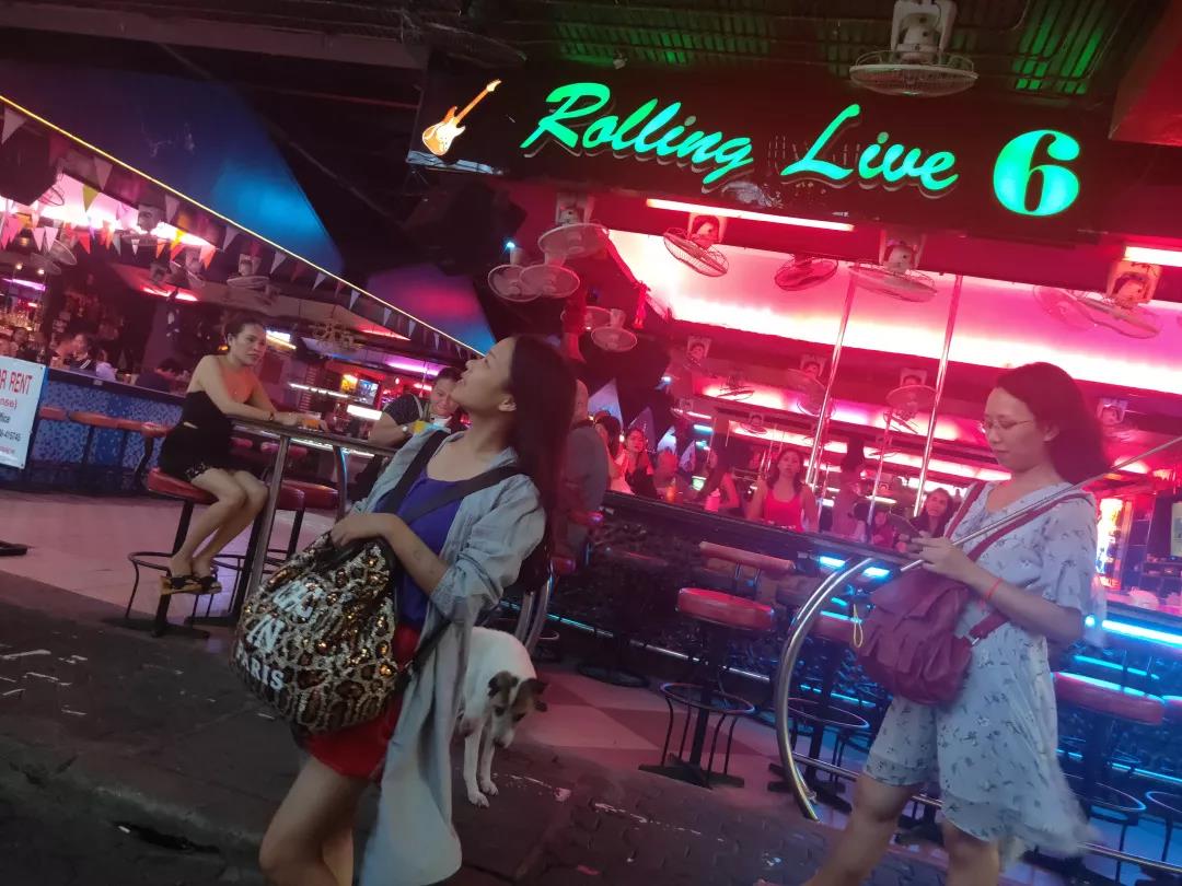 芭提雅泰俄風情步行街兩旁有各式小吃、酒吧,街上熙熙攘攘,是游客必經(jīng)之地。酒吧中經(jīng)常有音樂表演、泰拳表演。行走的、兩旁酒肆咖啡屋閑坐的,十之七八是西方白種人。白天相對冷清,一到晚上燈火通明,夜夜笙歌,燈紅酒綠,這里是個一刻也不寧靜的嘈雜世界,這是西方白人娛樂的天堂。