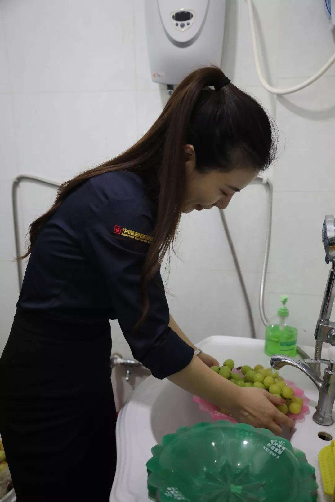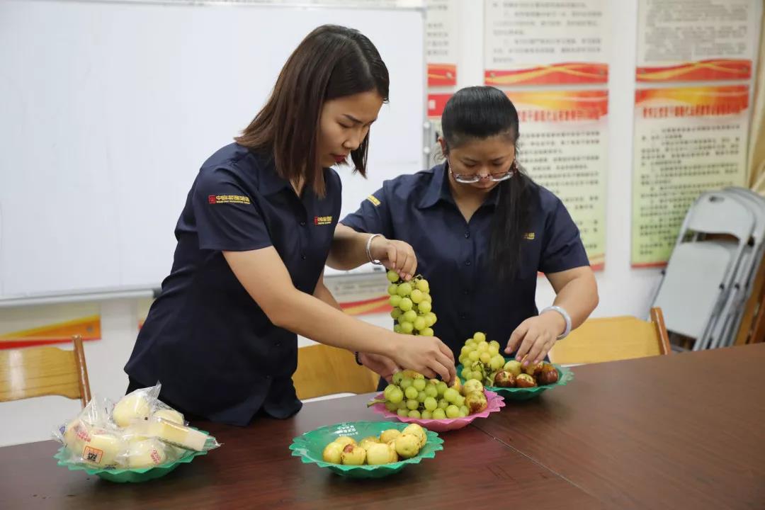 ▲小姐姐在為即將到來的老人們準備水果點心