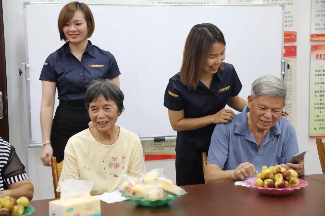 ▲老人們陸續(xù)到達社區(qū)會議室中,中庭的家人們與老人們與他們親切交流,了解老人們的日常生活和健康情況,叮囑他們要保重身體,并把葡萄和青棗一一送到他們手中,一時間,老人們個個臉上洋溢著喜悅的笑容,會議室內(nèi)暖意融融,處處洋溢著歡笑。