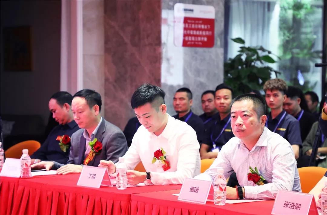 廣西建筑裝飾協(xié)會副秘書長譚謙、南寧電視臺總監(jiān)劉昌輝、TATA木門渠道部經(jīng)理李笑寒、歐派潔具總經(jīng)理曾濤、集團總裁丁胡、副總裁張浩熙、副總裁吳文戰(zhàn)、中庭裝飾副總經(jīng)理鄒恒元出席本次發(fā)布會,與集團全體員工以及現(xiàn)場業(yè)主朋友們共同見證中庭裝飾集團品質(zhì)家3.0戰(zhàn)略發(fā)布盛況。