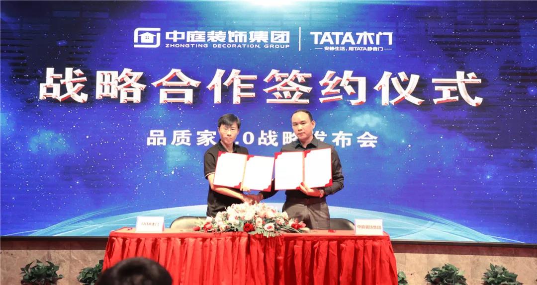 ▲集團副總裁吳文戰(zhàn)與TATA木門渠道部經(jīng)理李笑寒簽署戰(zhàn)略合作協(xié)議