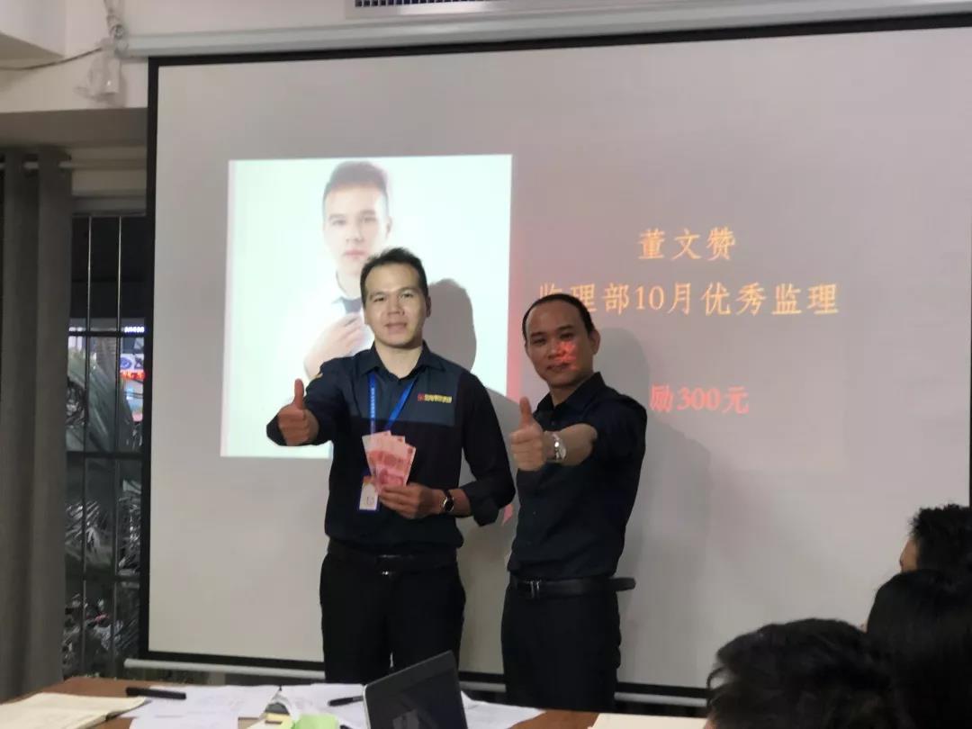 工程質(zhì)量管理中心總經(jīng)理吳文戰(zhàn)給10月表現(xiàn)優(yōu)秀的家人頒發(fā)獎勵: