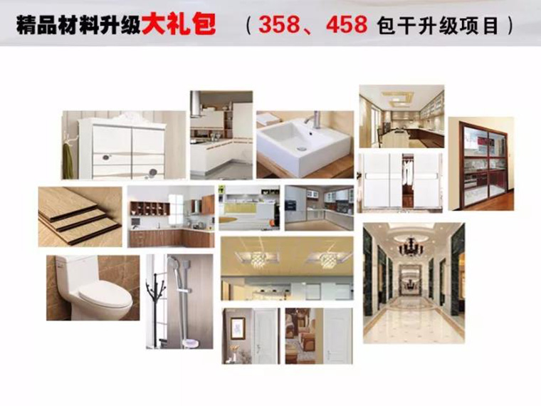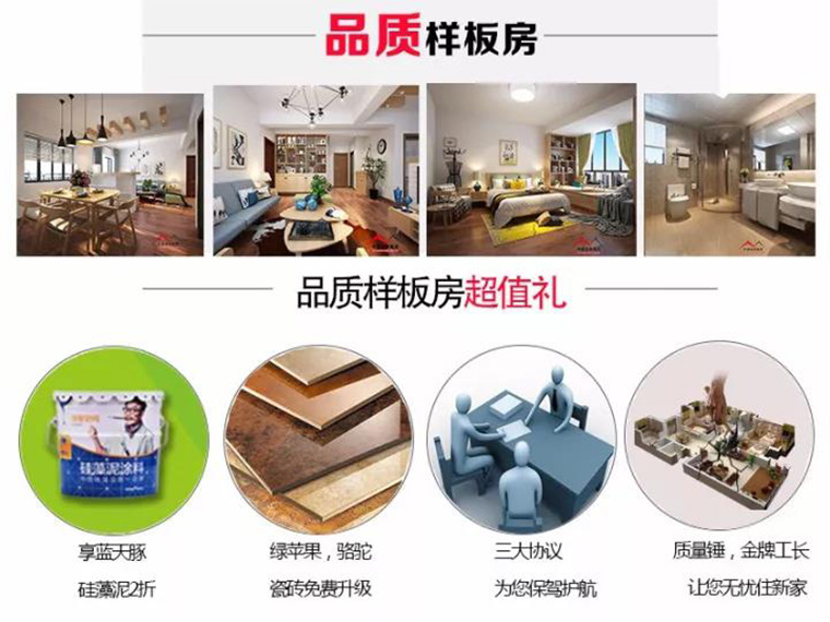 全房精品主材,墻漆,吊頂、瓷磚、木地板、衛(wèi)浴、櫥柜、室內(nèi)門,等免費(fèi)升級(jí),您可以選購到自己心儀的家裝建材,還能享受超級(jí)折上折哦!
