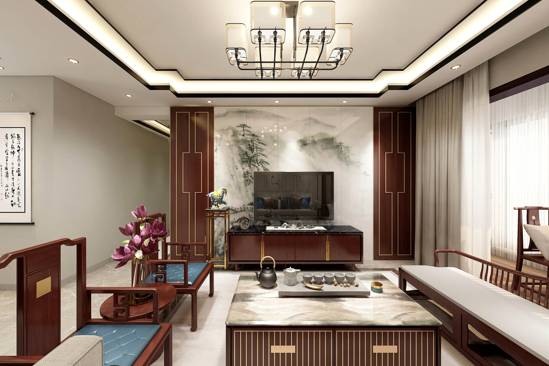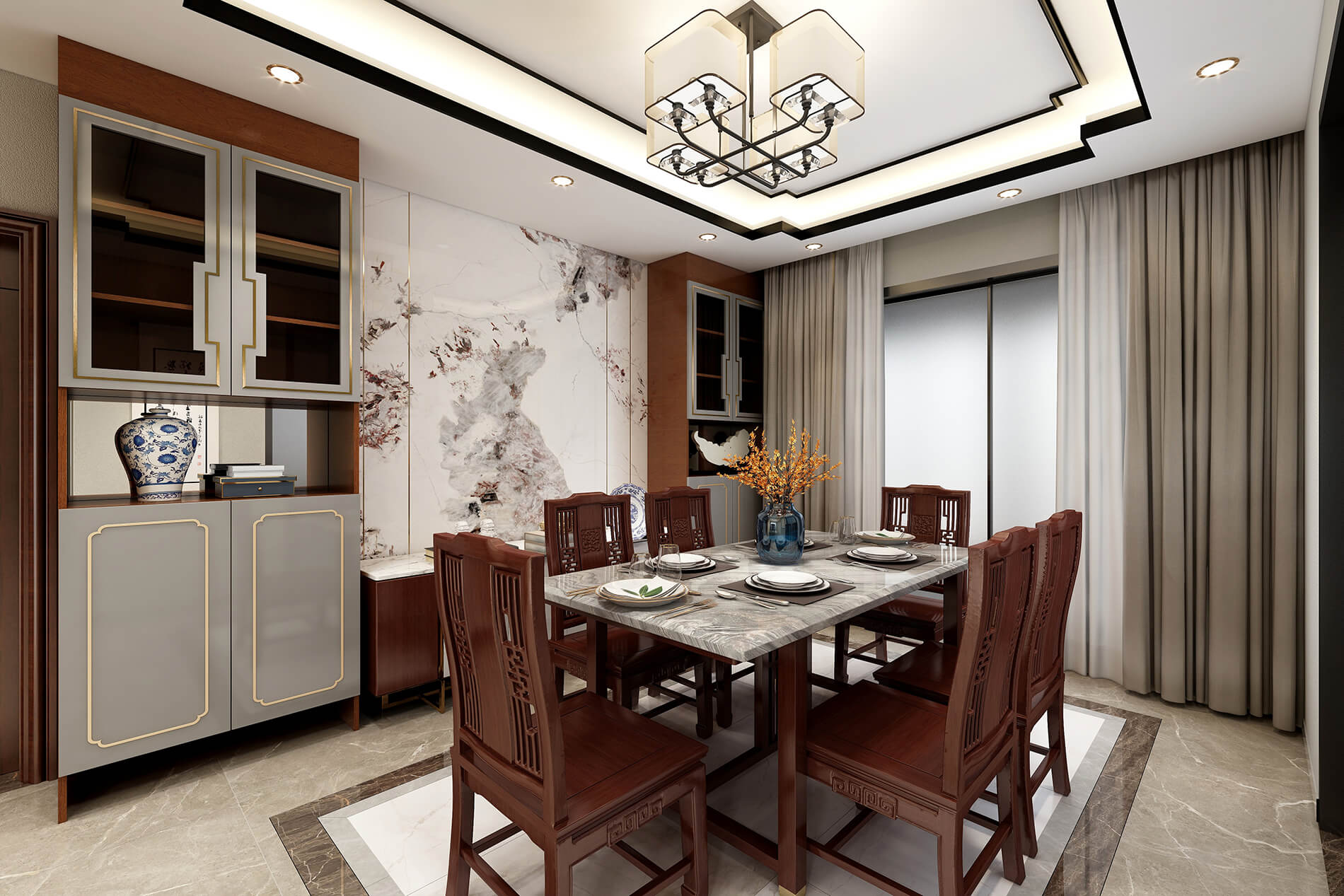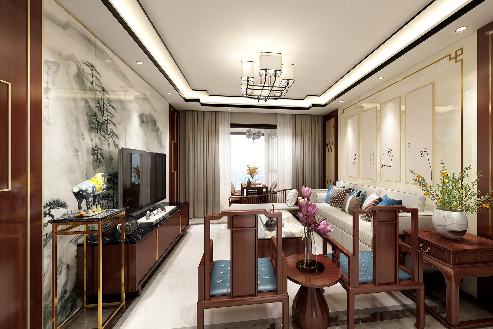 綠地中央廣場141m²新中式風格案例