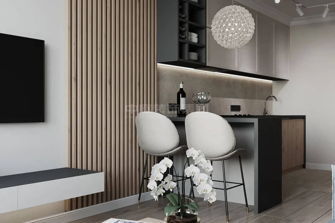 本案總面積90平,整體以灰白色為基調,配合木色點綴和燈光設計,使得室內光線明亮而溫暖,注重“家”的打造,給人溫馨舒適的感覺。