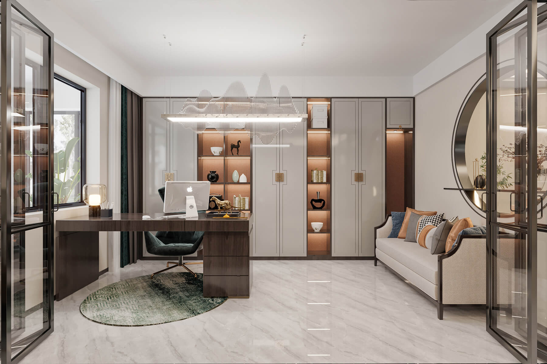 瀏覽量:794本案總面積136㎡,整體采用新中式風(fēng)格設(shè)計(jì)。沿襲傳統(tǒng)江南風(fēng)情,蘊(yùn)藏著悠然詩(shī)意的傳統(tǒng)文化在空間中娓娓道來(lái)。東方的風(fēng)韻與藝術(shù)的雅致,以簡(jiǎn)練的手筆,營(yíng)建清寧澄凈的氣質(zhì)與芳華。